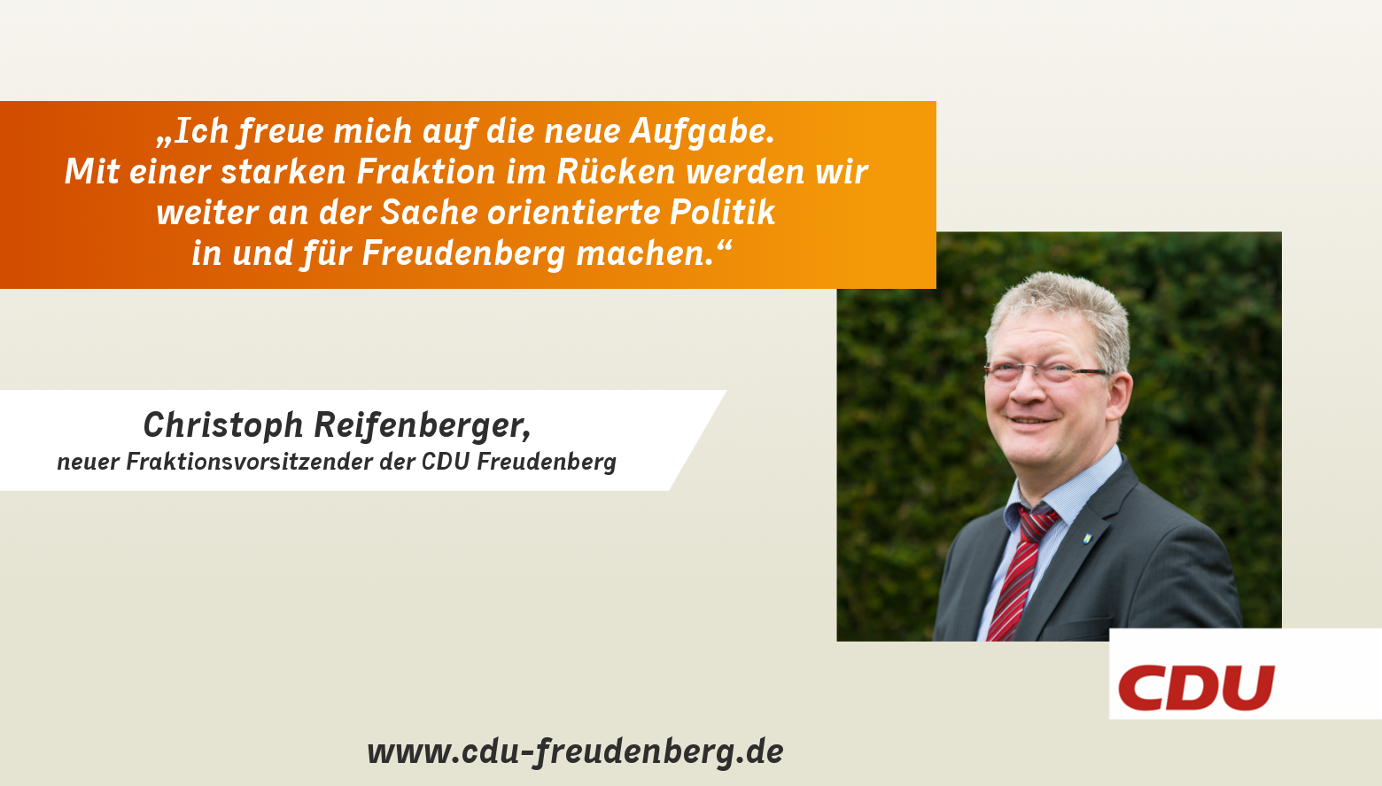 Die CDU-Fraktion Freudenberg hat Ende Juni zur Halbzeit der Legislaturperiode satzungsgemäß ihren Fraktionsvorstand für die kommenden drei Jahre gewählt. Hierbei wurde ein Wechsel an der Fraktionsspitze vorgenommen. Alexander Held, der bisher die CDU-Fraktion als Vorsitzender angeführt hat, stand für eine neue Amtszeit aus privaten und beruflichen Gründen nicht mehr zur Verfügung. „Ich mache etwas ganz oder gar nicht, aber eine halbherzige Fraktionsführung kam für mich nicht in Frage, sodass ich an dieser Stelle Prioritäten setzen musste. Im Leben verändern sich immer wieder Aufgaben sowie die notwendigen Prioritäten. Kommunalpolitik machen wir alle in unserer Freizeit. Wir alle haben noch eine Familie und einen Job, und auch dort verändern sich die Anforderungen und Zeitbudgets. Ich werde zukünftig als Ratsmitglied der CDU-Fraktion weiterhin mit Rat und Tat zur Verfügung stehen. Wir haben mit Christoph Reifenberger einen sehr guten Fraktionsvorsitzenden für die CDU-Fraktion gewinnen können“, nahm Alexander Held bereits das Ergebnis der Wahlen voraus. Einstimmig war die Wahl von Christoph Reifenberger, der bisher als Fraktionsgeschäftsführer im Fraktionsvorstand tätig war. Zum neuen Fraktionsgeschäftsführer wurde Wolfgang Samol gewählt. Der bisherige erste stellvertretende Fraktionsvorsitzende Johannes Werthenbach wurde in seinem Amt ebenfalls einstimmig bestätigt. Zum zweiten stellvertretenden Fraktionsvorsitzenden wurde Thomas Bertelmann gewählt. Dieser übernimmt dazu das Ressort der Presse und Öffentlichkeitsarbeit. Als Beisitzer im Fraktionsvorstand wurde auch Nils Gattwinkel bestätigt. Somit geht der Fraktionsvorstand der CDU Freudenberg leicht modifiziert und motiviert in die zweite Hälfte der Legislaturperiode. „Ich freue mich auf die neue Aufgabe. Mit einer starken Fraktion im Rücken werden wir weiter an der Sache orientierte Politik in und für Freudenberg machen. Für uns ist es auch zukünftig das Ziel, unsere Stadt Freudenberg positiv zu verändern“, so Christoph Reifenberger abschließend.